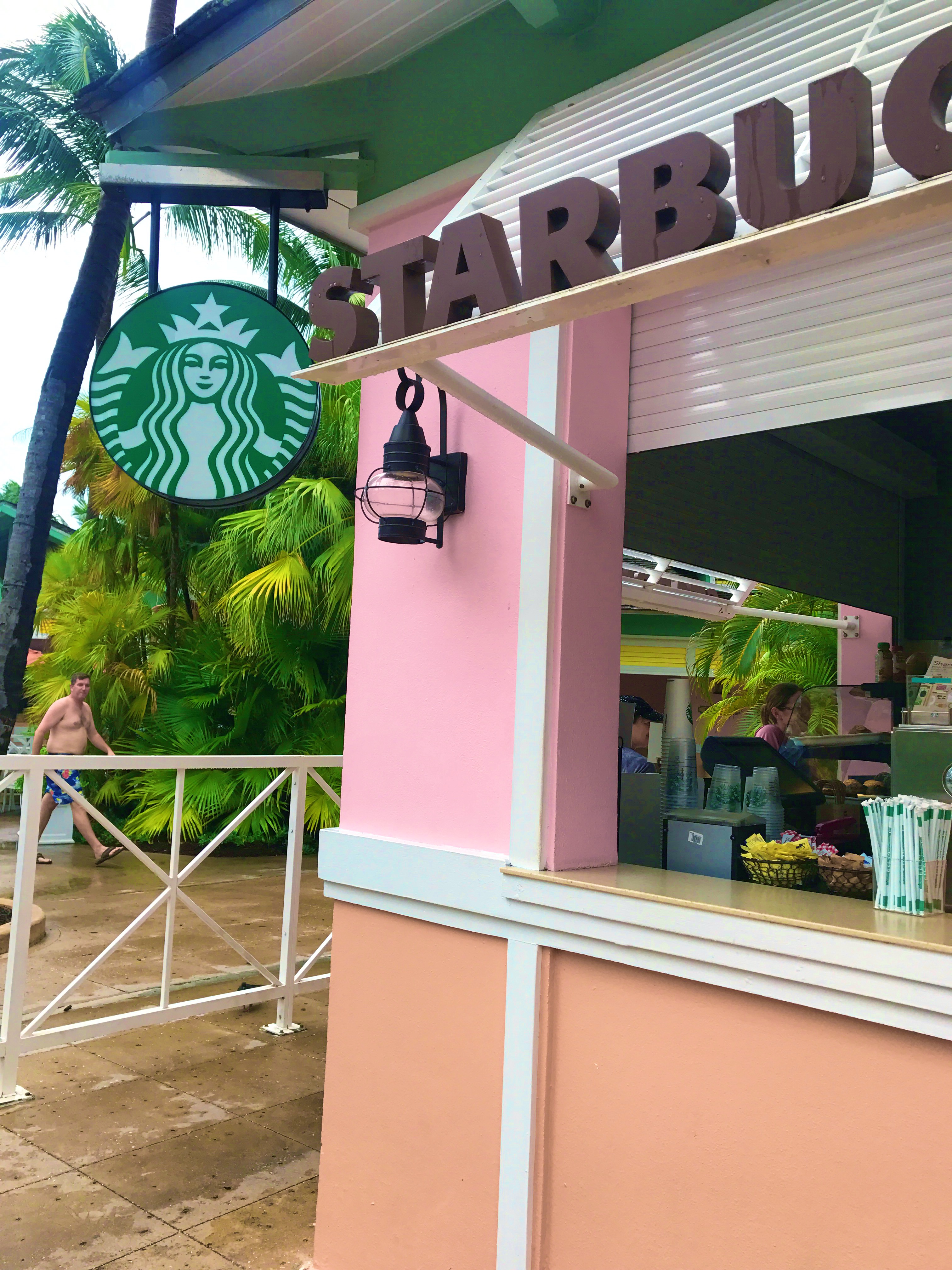 The resort itself is super gorgeous, between the ocean and the harbor. Palm trees, flowers, perfectly landscaped. It’s beautiful and well designed everywhere. The animals look healthy and happy and there is a Starbucks onsite! (the one by the pool has been open every day 11-6!)