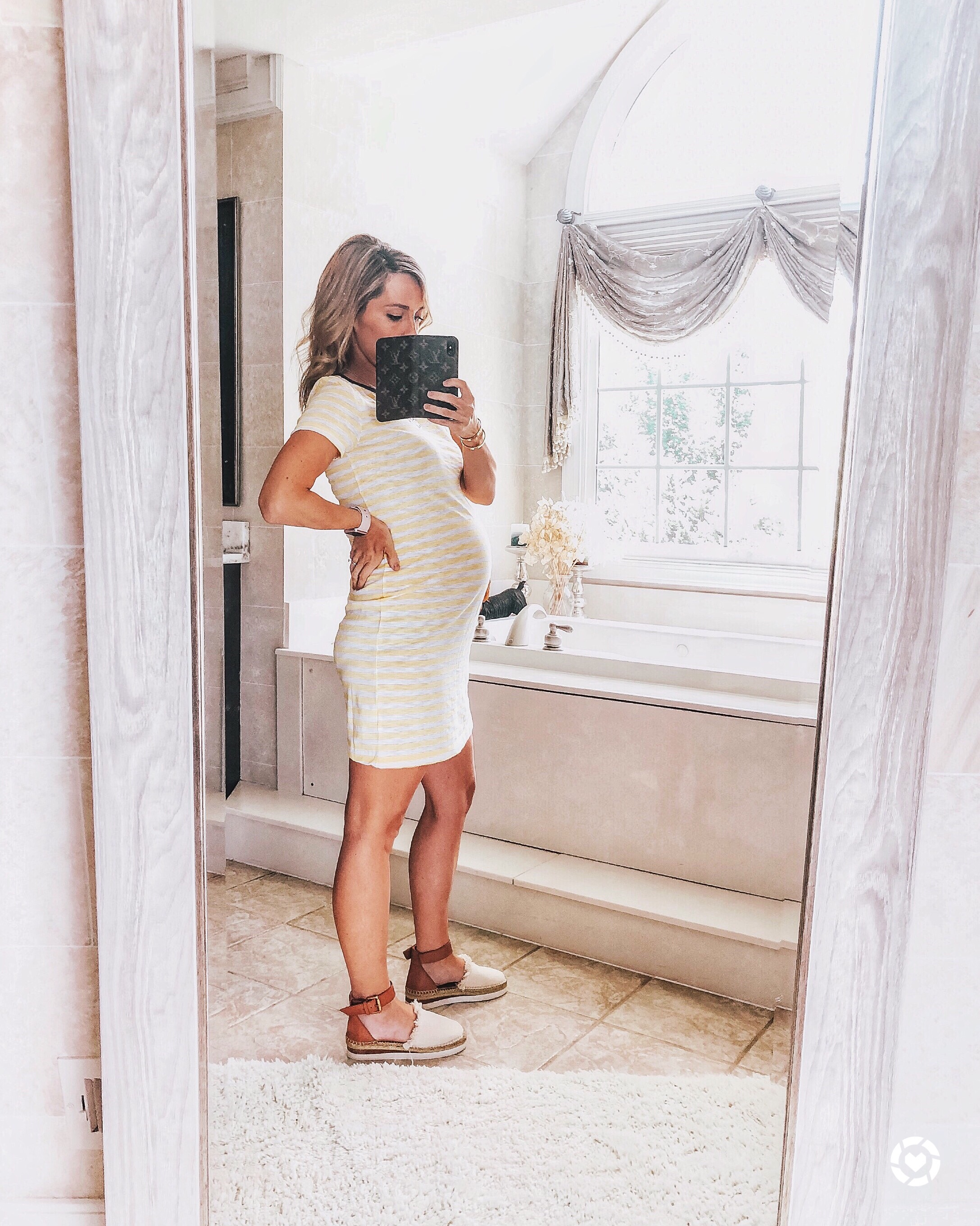 The most loved maternity look from Brooklyn’s pregnancy! This dress is from Shein, and I do love their clothes and shop there. HOWEVER, always read the customer reviews about sizing and fit. I almost always order up a size or two because of the reviews.