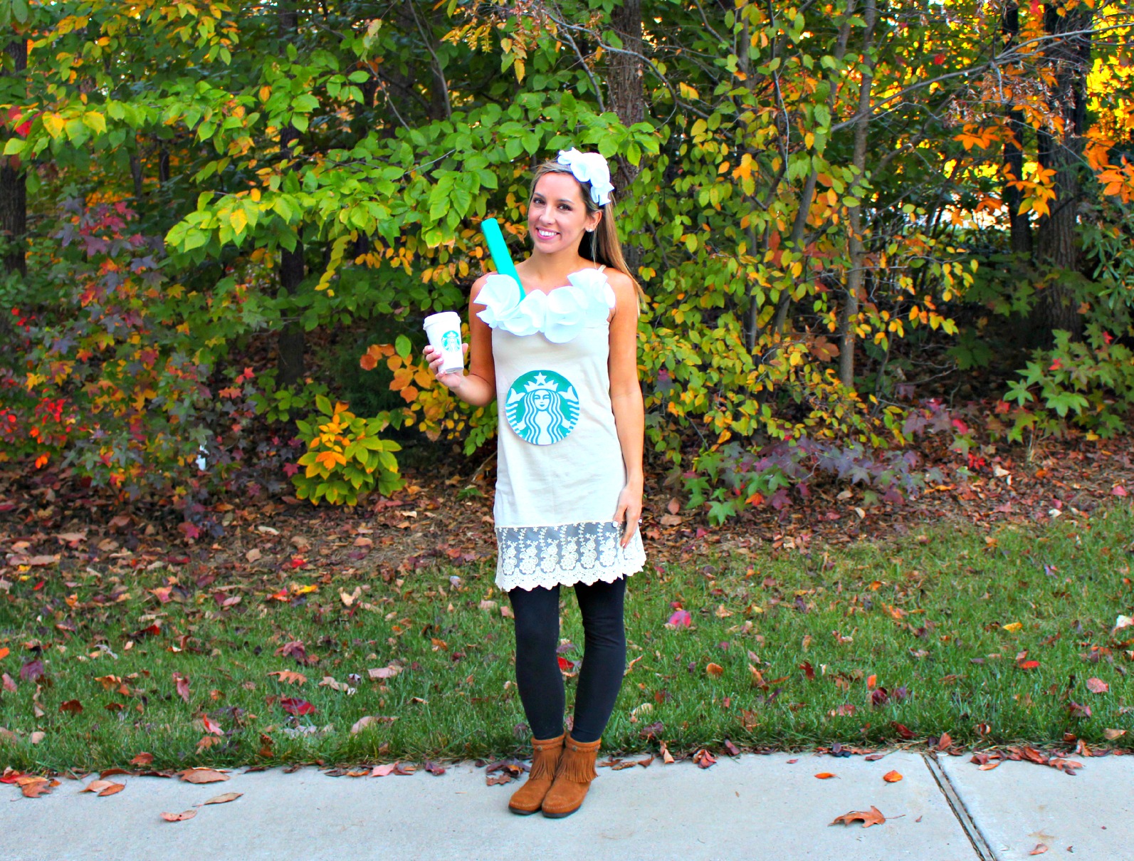 I went off to JoAnn Fabrics to get some green acrylic paint (a whole dollar spent) and several sheets of white felt. I followed Southern Curls & Pearls easy directions, and she was totally right. SUPER EASY & FAST. and voila! Here is my take on her “Frappuccino” look. I also made a little headband for extra whip cream. I just took a black cotton headband that I already had and it worked like a charm. Thanks for the inspo Caitlyn!