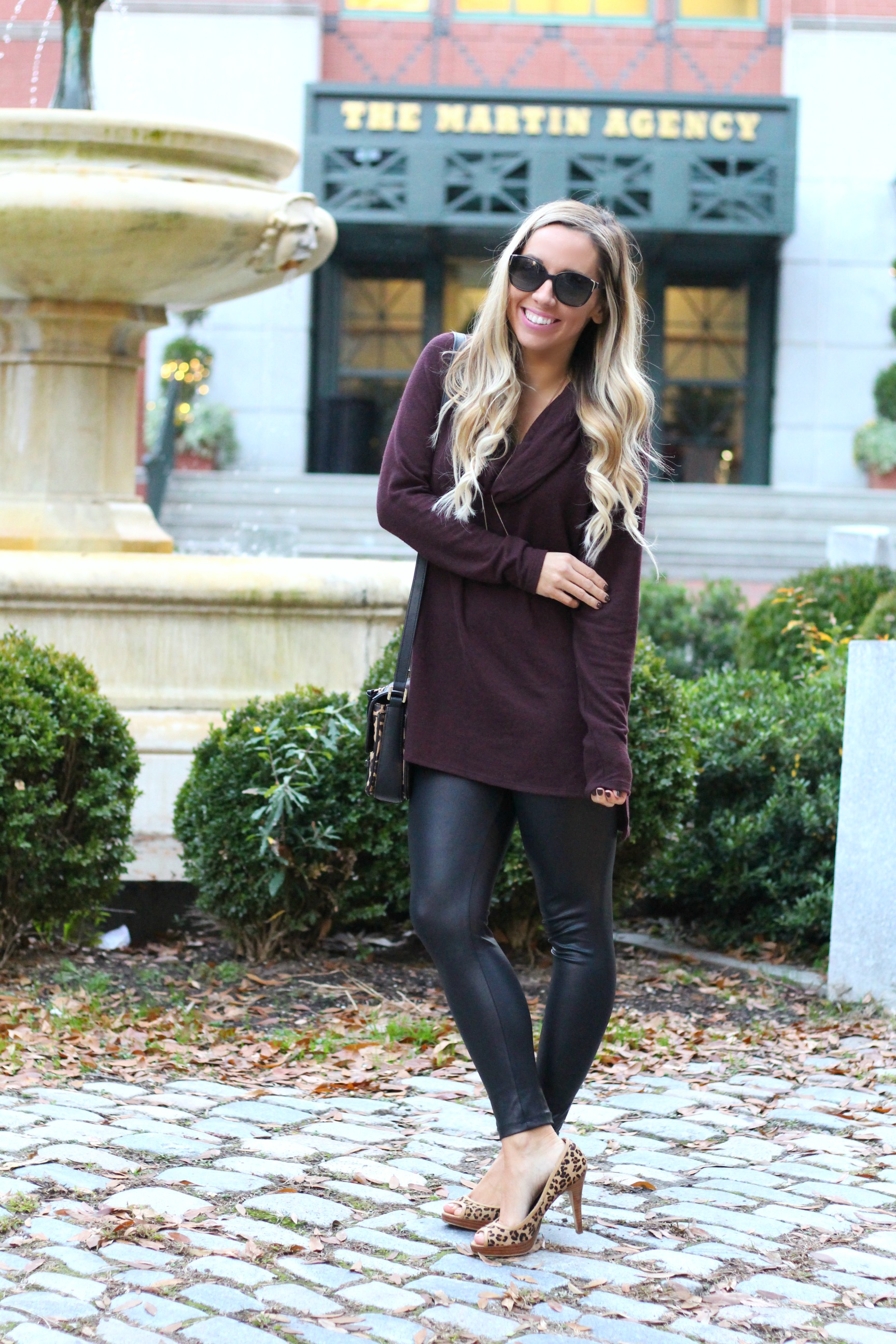 Obsessed with that sweater! That hem (with it shorter in the front and longer in the back) is perfect! Love how you incorporated the faux leather leggings and the cheetah print!
